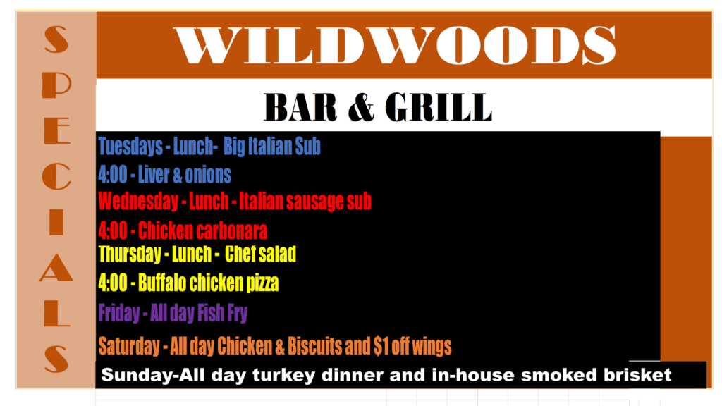 Wildwoods Bar & Grill is always open to any questions you may have about our food and services. Reach out to us today, and we’ll gladly assist you. Talk to Us
